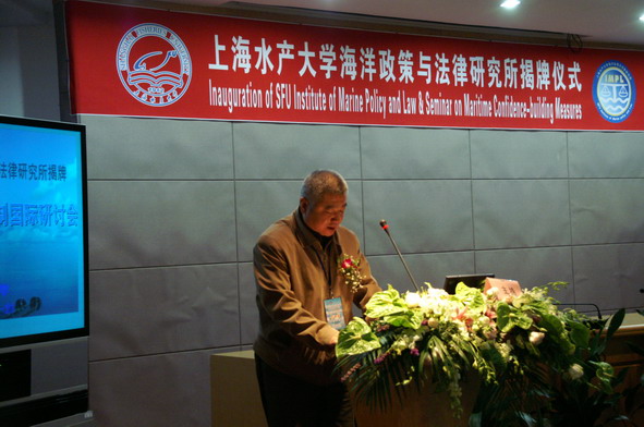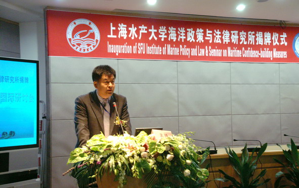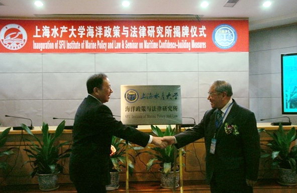 10月20日上午,上海水产大学海洋政策与法律研究所揭牌仪式在我校科技楼学术会议厅隆重举行。来自全国人大、海军、中国社会科学院、国防大学、农业部渔业局、中国人民解放军某部、中国人民争取和平与裁军协会、中国大洋矿产资源研究开发协会、国家海洋局东海分局、农业部东海区渔政渔港监督管理局、福建省海洋与渔业局、中国海监东海总队、中国海洋法学会、上海市科委、上海社会科学院、华东政法大学的领导、专家,以及来自加拿大达尔豪斯大学和渥太华大学的外宾到会祝贺。