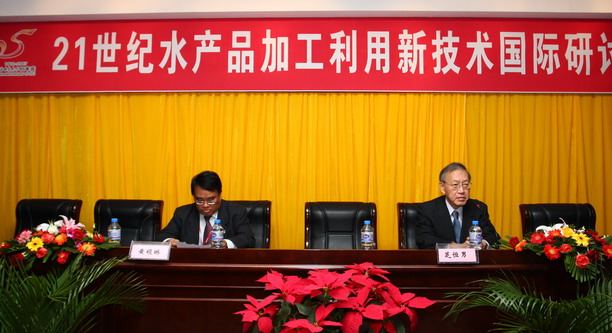 开幕式上,黄硕琳副校长与日本水产大学校食品科学科科长芝恒男教授分别为本次研讨会致辞。黄副校长希望通过此次活动能进一步加强国际间水产品领域的技术交流,促进世界水产品加工新技术的发展。芝恒男教授在为我校95周年校庆送来美好祝愿的同时,也提出了逐步深入同我校的科技合作与学术交流的愿望。