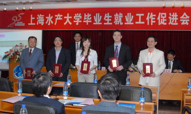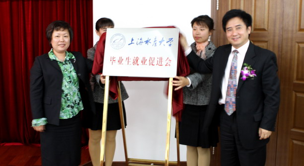 按照大会议程,首先请与会嘉宾观看了学校情况介绍宣传片,接下来,校长助理吴建农宣读学校《关于成立上海水产大学毕业生就业工作促进会的决定》及《上海水产大学毕业生就业工作促进会章程》。市教委学生处处长汪歙萍、校党委副书记、副校长黄晞建为促进会进行了揭牌。