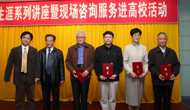 校党委副书记、副校长黄晞建亲临活动现场,为上海市五位开业指导专家颁发了聘书,招毕办副主任朱克勇从上海市社会科学界联合会科普处处长生键红女士手中接过05、06年度“东方讲坛· 开业生涯”系列讲座的DVD。