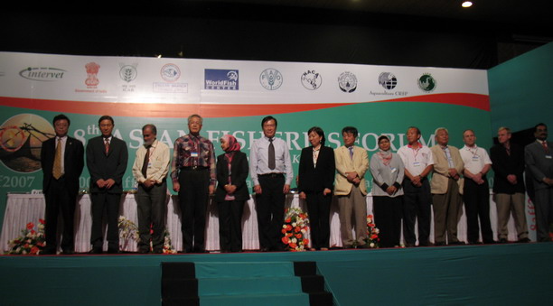 在大会的开幕式上,我校周应祺教授获得了亚洲渔业大会2007年度学会奖,这也是中国学者在本次年会上唯一获得的奖项。本届大会还进行了新一届理事会的改选。我校杨毅教授当选为新一届理事会主席,周应祺教授连任新一届理事。