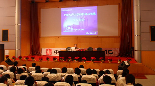 2007年12月4日,潘迎捷校长在学海路校区600人报告厅作了题为《上海水产大学的机遇与挑战》的精彩报告,报告同时对我校2007级新生进行了现场直播。