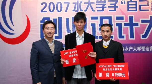 2007年12月6日下午,由校招毕办、团委、学生处、研究生部、宣传部共同主办,生命学院承办的2007水大学子“自己做老板”创业设计大赛决赛在我校培训中心举行。经过选手答辩、专家审评,由食品学院推选的kelphy饮料创意团队获得本次大赛金奖。校党委副书记、副校长黄晞建,市科技创业中心副主任韩明远、市教委学生处副处长田磊以及团市委、市学生联合会学校部副秘书长邵世志等领导出席仪式并致辞。