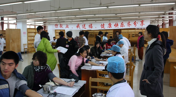 深冬时节,阵阵寒意,但是在水大校园却洋溢着浓浓的暖意。12月13日-17日,2007年度无偿献血活动在学海路和军工路校区举行。今年我校献血工作任务繁重,但在同学们积极踊跃报名下,在校办、校医务室、学生处、后勤办以及各学院等部门通力合作下,无偿献血工作圆满完成。截至12月17日上午,我校共有1547名师生参加了此次无偿献血活动。