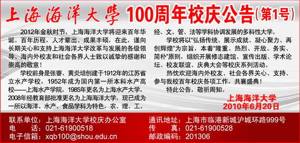 百年海大,百年相聚。从现在开始,学校正式启动百年校庆筹备工作,组织开展校庆系列活动。其中,包括修志建馆、宣传出版、学术论坛、校园建设、校友联络、庆典大会、合作发展、资金募集等。我们热忱欢迎和衷心期待全体校友、海内外各界人士关心、支持、参与开云kaiyun登录入口百年校庆的各项筹备工作,与我们一道共襄盛典,共话未来!