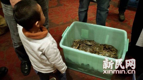 图为参赛全国河蟹大赛的河蟹必须是长江水系及其以南地区的蟹。比赛现场涌现出大批优质蟹。