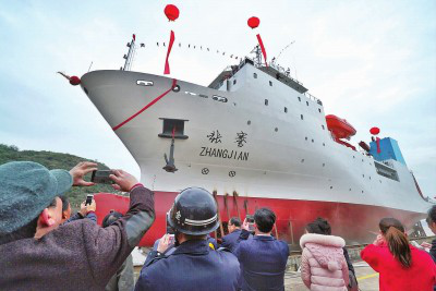 (记者 许琦敏)中国人离潜下海洋最深处的梦想又近了一步。昨天,4800吨级1.1万米载人深潜器专用科考母船“张謇”号,在浙江天时造船有限公司正式举行下水仪式。2019年,它将携带全海深载人深潜器,冲击马里亚纳海沟,挑战极限。而今年八九月,它将先带着全海深无人潜水器和着陆器,进行1.1万米马里亚纳海沟测试。