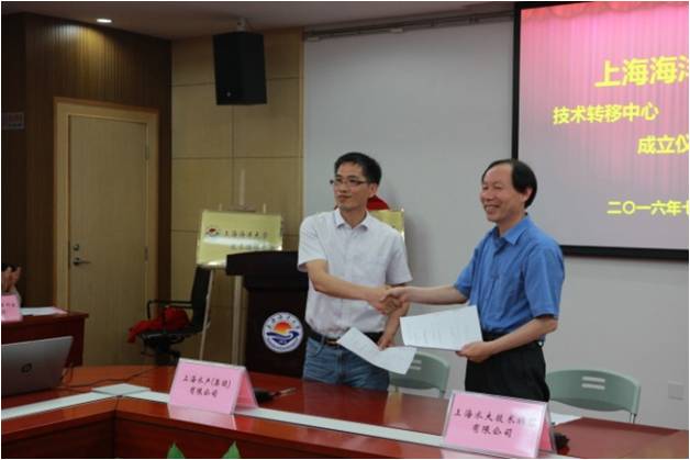 会上,吴炯华总经理汇报了学校技术转移体系的筹建情况,人事处处长俞渊宣读了技术转移中心成立文件,资产公司总经理倪国进宣读了技术转移公司成立决议,技术转移公司董事长李延臣副校长代表董事会聘任吴炯华担任公司总经理,技术转移中心主任李家乐副校长为获上海市技术经纪人资格的科技人员颁发证书,并分别与上海水产(集团)总公司、上海得渔海洋科技有限公司签定了技术转移合同。