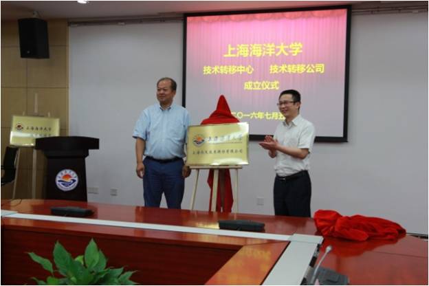 上海市临港管委会经贸办龚红兵副主任与李延臣副校长为技术转移公司揭牌