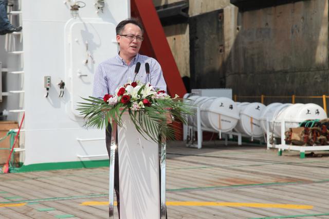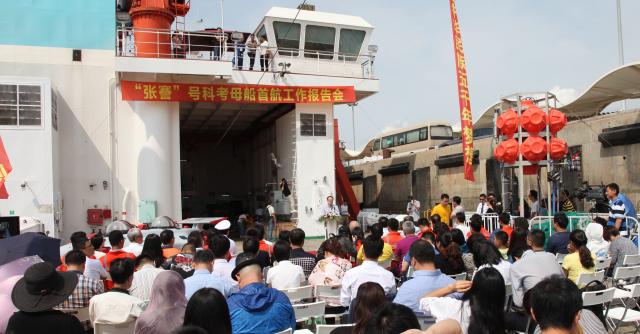 9月23日上午,“张謇号”科考母船首航归港仪式在芦潮港码头举行。校长程裕东、副校长李延臣、上海港城开发(集团)有限公司副总经理程胜海出席活动,上海彩虹鱼海洋科技股份有限公司董事长吴辛介绍了首航情况,彩虹鱼科考船公司董事长卢云军主持。中央电视台、新华社、文汇报、解放日报、新民晚报、上海电视台等二十余家上海及中央驻沪媒体派出记者到场报道。