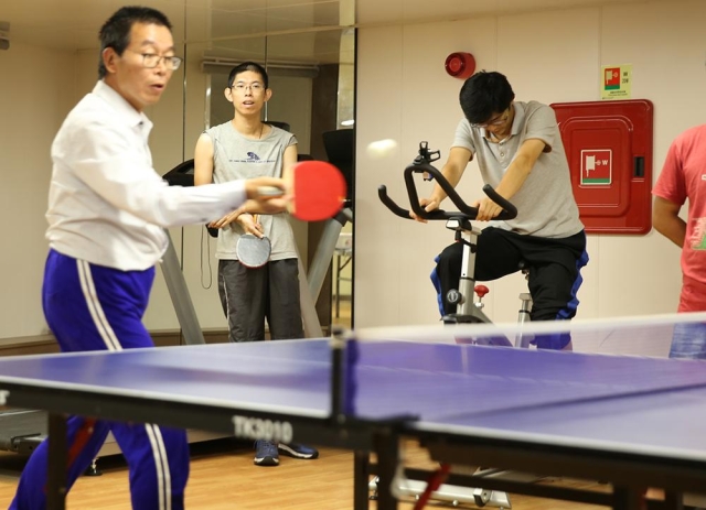 总领队、深渊科技中心主任崔维成给乒乓球比赛开球
