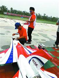 黄振迪夺得的全运会群众比赛航空模型遥控涡喷特技飞行(F4J)项目金牌,有队友支正毅、葛磊、盛强的功劳。