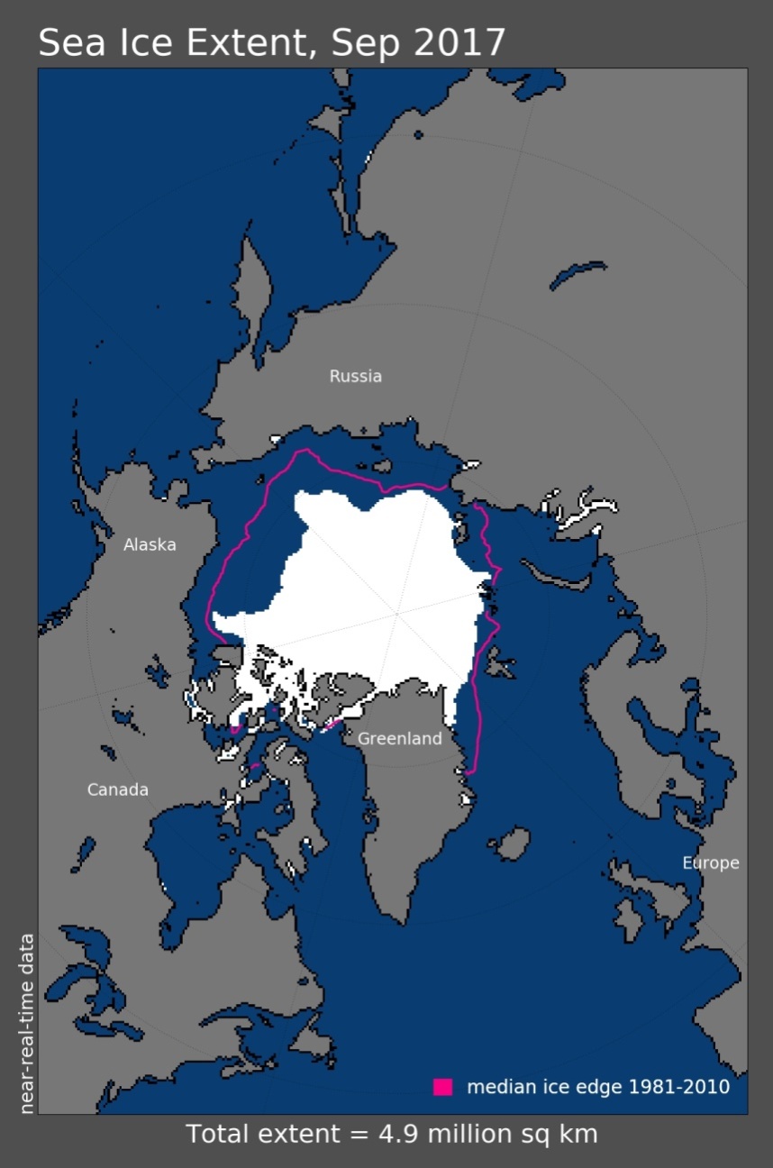 2017年9月北极海冰覆盖面积分布状况