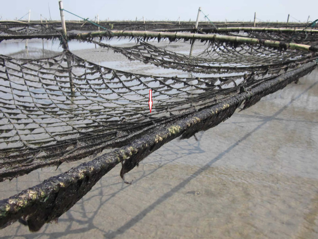 养殖缆绳上育苗生长大量紫菜抑制浒苔附生
