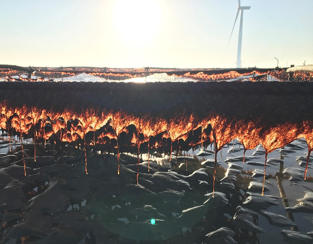 紫菜附着在缆绳上可有效抑制浒苔增殖