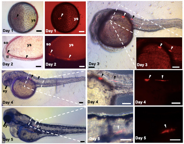 马口鱼精原干细胞在斑马鱼胚胎分化形成不同胚层的细胞