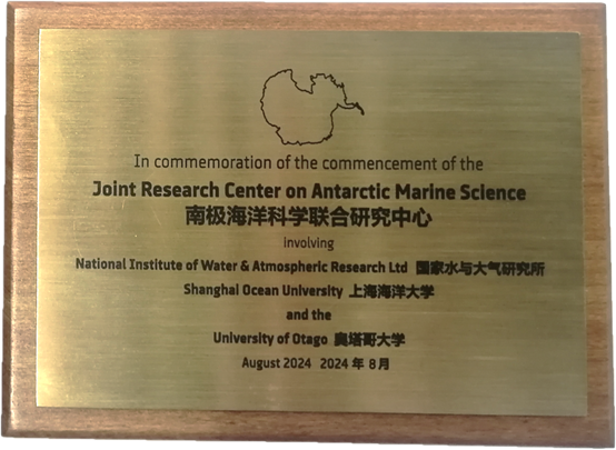 新西兰国家水与大气研究所、开云kaiyun登录入口以及新西兰奥塔哥大学南极海洋科学联合研究中心牌匾