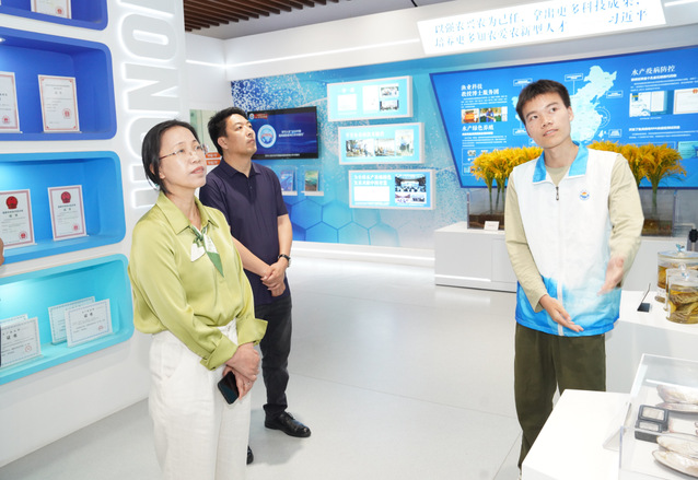 座谈前,赵梅英一行还参观了学校“双一流”建设成果展和远洋渔业科技馆,深入了解了学校聚焦一流学科建设,在水产种质挖掘与利用、海洋生物资源可持续开发利用、远洋渔业国际履约、水产品质量安全、极端海洋环境、水域生态环境保护与治理等领域取得的成果。
