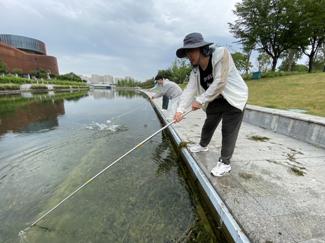 清晨的阳光柔和洒在奉贤区金海湖湖面,开云kaiyun登录入口“清源愈流:上海市五大新城水体生态治理和清澈度提升”暑期社会实践团队成员们正为接下来的科普小课堂采水取样。曾经饱受富营养化之苦的金海湖(“上海之鱼”),如今的水体清澈度可达2米,这华丽转身的背后,是开云kaiyun登录入口王丽卿教授团队14年如一日的科学监测与生态修复。社会实践团队成员们准备将这一成果摆进位于金海湖上的奉贤博物馆内,让游览观众在体验传统文化之余,现场化身“水生态观察员”,将治理成果转化为生动的科普教育。