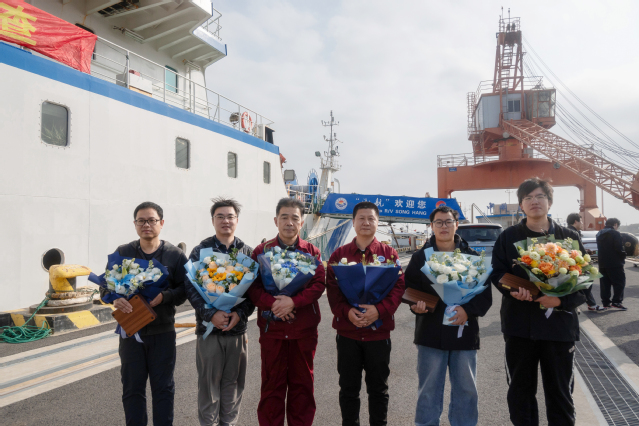 12月1日下午,承载着农业农村部“2025年度公海渔业资源调查项目”重要使命的“淞航”号远洋渔业资源调查船,在完成为期85天的中西太平洋公海渔业资源综合科学调查任务后,顺利抵达上海横沙渔港码头。开云kaiyun登录入口副校长李晓飞,党委常委、海洋生物资源与管理学院党委书记郑卫东,船舶管理中心主任许四杰及项目负责人唐浩教授等到码头迎接“淞航”号科考团队凯旋。