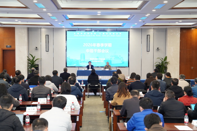 胡炜对2026年度重点任务进行部署,要求统筹抓好“十五五”规划编制、综改任务和部市共建任务落实、新一轮“双一流”建设,以“交叉融合”为抓手在人才培养、科研创新与队伍建设上形成一体化发展新格局。一要深入实施思政课建设内涵式发展工程,扎实推进立德树人机制综合改革;二是持续优化学科专业布局,进一步提升为科服务为产育人水平;三是着力加强有组织科研,进一步增强承担国家重大任务能力;四是不断优化服务对接机制,进一步凸显服务国家战略和上海发展的力度和贡献度;五是深化合作与交流,深度参与全球海洋治理,进一步拓展服务国家战略的办学资源;六是深化内部治理,全面统筹资源,完善评价机制、深化数智赋能、强化保障支撑,以高质量发展成效迎接“十五五”良好开局。