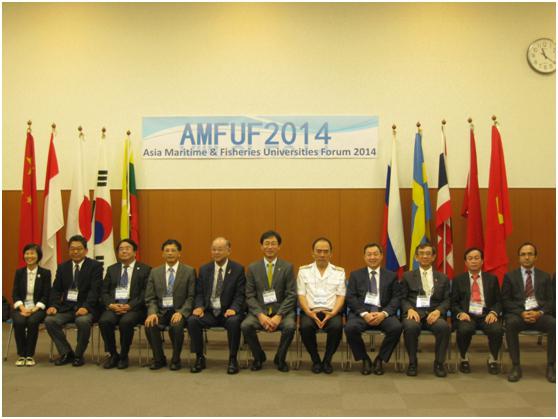 From October 13 to 14, 2014, Vice President Huang Shuolin of our university and Professor Xu Liuxiong of College of Marine Sciences participated in the 13th Asia Maritime and Fisheries Universities Forum (AMFUF 2014). In total, representatives from 17 universities and research institutions in 11 countries and regions, including Korea Maritime University, Daliann Maritime University, Tokyo University of Marine Science and Technology, Russia Far Eastern State Technical Fisheries University, Vietnam Maritime University, Japan Kobe University, Thailand Burapha University, National Taiwan Ocean University, Korea Institute of Maritime and Fishery Technology, and our university, participated in this forum.