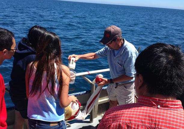 Over the course of several days, these postgraduate students visited the Institute of Marine Science located in Data Point in Los Angeles and went to sea on a scientific research ship of the Institute of Marine Science. They used observation devices to observe the seabirds and sonar devices to track the blue whales in this area. Assisted by students and researchers from the Department of Marine Organisms of the University of Hawaii, all students participated in the sampling of marine sediment, separated and identified the molluscs in the marine sediment, collected water samples in the area, and observed, classified and took photos of the zooplankton and phytoplankton in the laboratory on board.