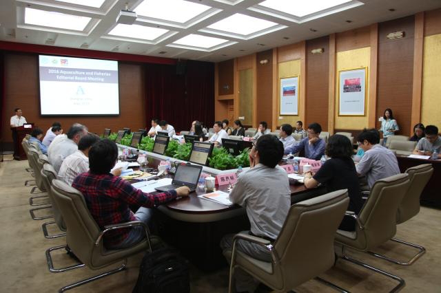 Academician Gui Jianfang, Professor Huang Shuolin and Professor Chen Yong made speeches as editors respectively, indicating that the publication of the first English aquaculture journal in China satisfied the demands of Chinese scientific and technical worker in aquaculture, filled the gap in the development of Chinese aquaculture journal, and was a great event in the entire academic community of aquaculture. They said they would try their best to guide the first editorial board and make joint efforts to make the new journal one of the top international aquaculture journals as soon as possible. Professor Jiang Min, Director of the Editorial Department, introduced the phased work of the Editorial Department from different perspectives, including the application for English journal, the official reply from the State Administration of Press, Publication, Radio, Film, and Television, the invitation for bids and cooperation with overseas publishers, the contributions and contribution reviewing, current development environment, journal development prospects, work plan in 2017, etc. Chai Zhao, Associate Senior Editor of the Science Press, made a report themed on “editorial board and publication”, introducing in details the main processes of the publication of international journals and the role of the editorial board in the publication of journal. Doctor Liu Yan of the Editorial Department introduced how to use EVISE, a newly released contribution reviewing system.