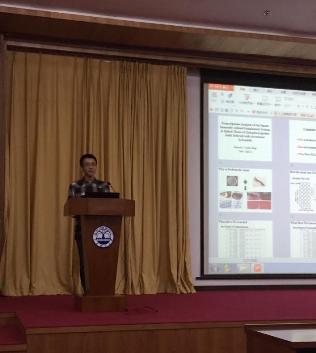 Professor Song Linsheng, Vice President of Dalian Ocean University, Professor Jae-Sam Yang of Korean Kunsan National University, Professor Li Chenghua of Ningbo University made splendid reports on the theme of forum, shared their academic achievements with graduate students and passionately interacted with all participants. Graduate students of our university, including Qiu Liang, Huang Shu, Dang Yunfei, Han Xuekai, Yu Mengchao, Sheng Nan, Wang Shaoxuan made brilliant oral reports in the English session and Chinese session respectively. They introduced their research achievements and won high praises. Finally, the thesis of Han Xuekai, Genetic Linkage Map Construction and QTL Analysis for Pearl Production Traits in Hyriopsis Cumingii, won the first prize of forum reports. The Establishment of the Real-time Loop-mediated Isothermal Amplification Method for Detecting a New Plant Type of Yellow Head Virus (YHV-8) of Qiuliang and the Comparative Transcriptome Research on the Adaptive Evolution of Schizothoracinae in Tibet Plateau of Yu Mengchao both won the third prizes. Four students won the prizes for excellent forum reports.