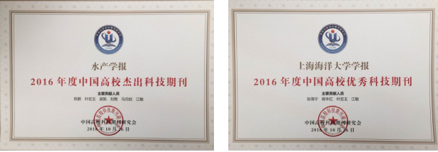 On Nov. 23, the Society of China University Journals presented China University Outstanding and Excellent Science & Technology Journal Awards and many other awards, including 20 China University Outstanding Science & Technology Journal Awards and 254 China University Excellent Science & Technology Journal Awards. The Journal of Fisheries of China undertaken by SHOU won China University Outstanding Science & Technology Journal Award, and the Journal of Shanghai Ocean University sponsored by SHOU won China University Science & Technology Journal Award.