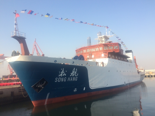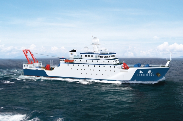 The launching of "Songhang" research vessel marks the successful completion of the major worksof the most advanced fishery resources research vessel in domestic. Thelaunched vessel is about to enter its equipment installation & debuggingand internal decoration phase. According to the preliminary plan, it will beaccepted and delivered in July, and set on its maiden trip in September orOctober.