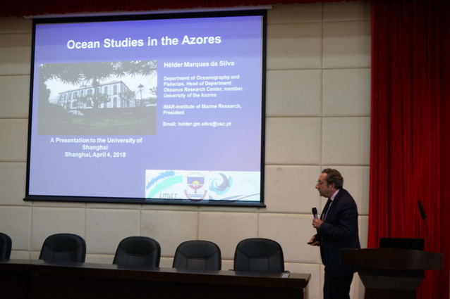 On the afternoon of April 4, professorHelder Silva, Director of the Department of Oceanography and Aquaculture andAdvisor to the Chairman on Marine Research, presented an academic reportentitled “Ocean Studies in the Azores” in the Lecture Hall A101 of the Collegeof Fisheries and Life Science to the teachers and students of SHOU, andintroduced in details the marine researches, scientific research programs,long-term fishery detection and management programs and other researchescarried out in the Region of Azores Islands. In the discussion link, theChinese and foreign teachers and students of SHOU engaged in a heateddiscussion with professor Helder Silva about academic issues.