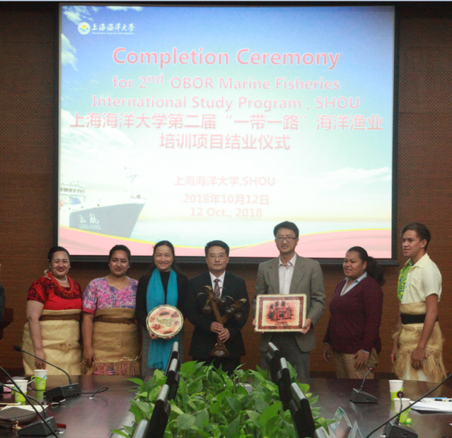 On the afternoon of October 12, SHOU held the Completion Ceremony for the 2nd OBOR Marine Fishery International Study Program in the meeting room 102 of Tuwen Information Center. Present at the ceremony were Zhong Junsheng, Director of the International Exchange Office; Zhu Zhanghua, Deputy Director of the International Exchange Office; Yang Jinlong, Vice Dean of the College of Fishery and Life Science; professor Liu Liping, a teacher representative; and teachers of the College of International Cultural Exchange. The ceremony was directed by You Luquan, Dean of the College of International Cultural Exchange.