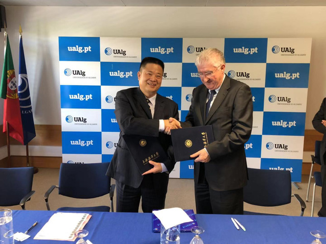 Chinese participants in the conference included Li Jiale, SHOU Vice President, professor Chen Liangbiao, professor He Peimin, professor Yang Jinlong, professor Zhu Jiangfeng, Doctor Li Tao, and graduate students of SHOU in Portugal; Portuguese participants present at the event included President Paulo Águas and professor Adelino Canario of the University of Algarve, Director Miguel Miranda of the Institute for Oceanic and Atmospheric Research of Portugal, and leaders of the University of Lisbon, the University of Azores, the University of Aveiro, etc.