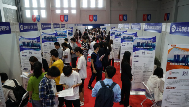 September 24, 2019 “Lujiazui Financial City Famous University Recruitment Express” (Autumn) Famous Enterprise Joint Recruitment & First Job Market in Lin’gang New Area (Special Session) was held in the stadium of SHOU. As the first on-campus job fair in Lin’gang New Area, the event attracted graduating students (2020) from five universities, i.e., SHOU, Shanghai Maritime University, Shanghai University of Electric Power, Shanghai DianJi University, and Shanghai Jian Qiao University. At the job fair, 84 enterprises and public institutions offered nearly 1,000 job opportunities, covering finance, shipping, logistics, law, science & technology, chemical engineering, electric power, maritime work, information, ship management, and many other key disciplines and specialties.